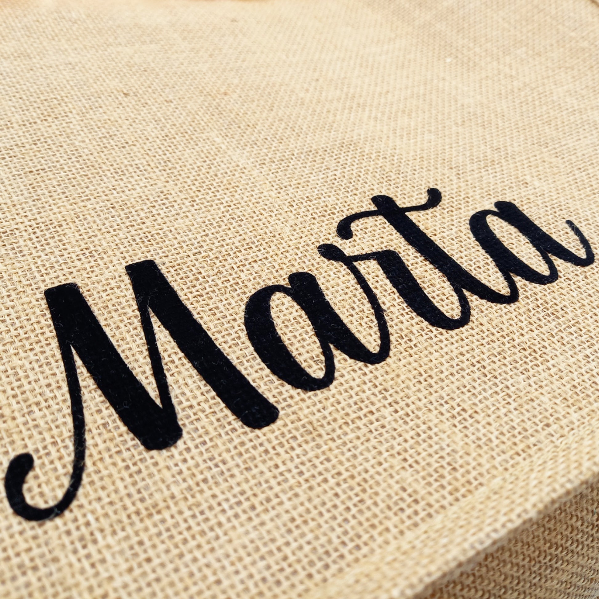 • BORSA PERSONALIZZABILE: tote bag in iuta da donna/ragazza personalizzata con iniziali, nome o testo in velluto o glitter (a scelta su uno o su entrambi i lati).