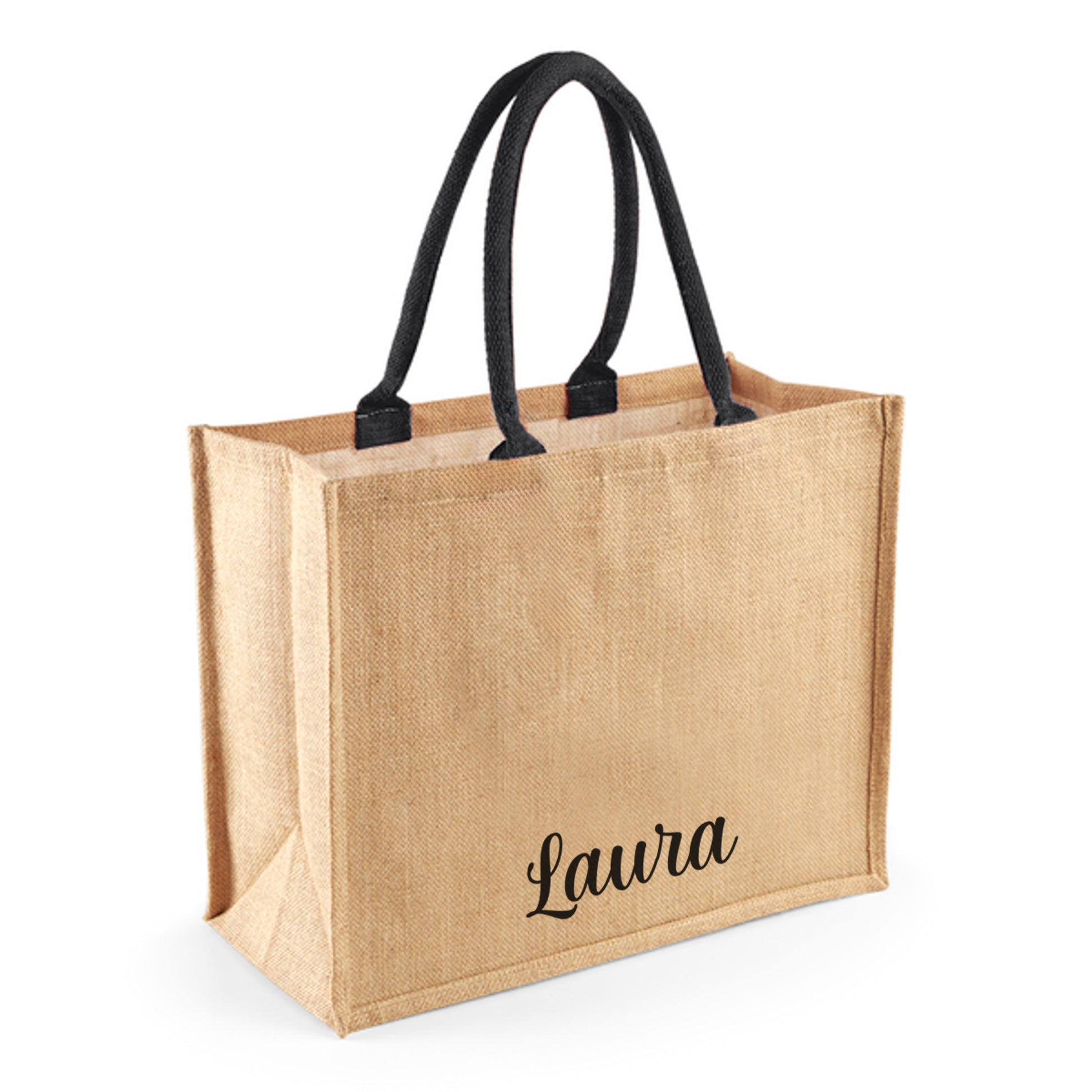 • TESSUTO: esterno in juta naturale resistente, manici in stoffa robusti (beige o neri), interno con rivestimento imperbeabile e idrorepellente facile da pulire. Leggere e comoda da indossare a mano o in spalla.