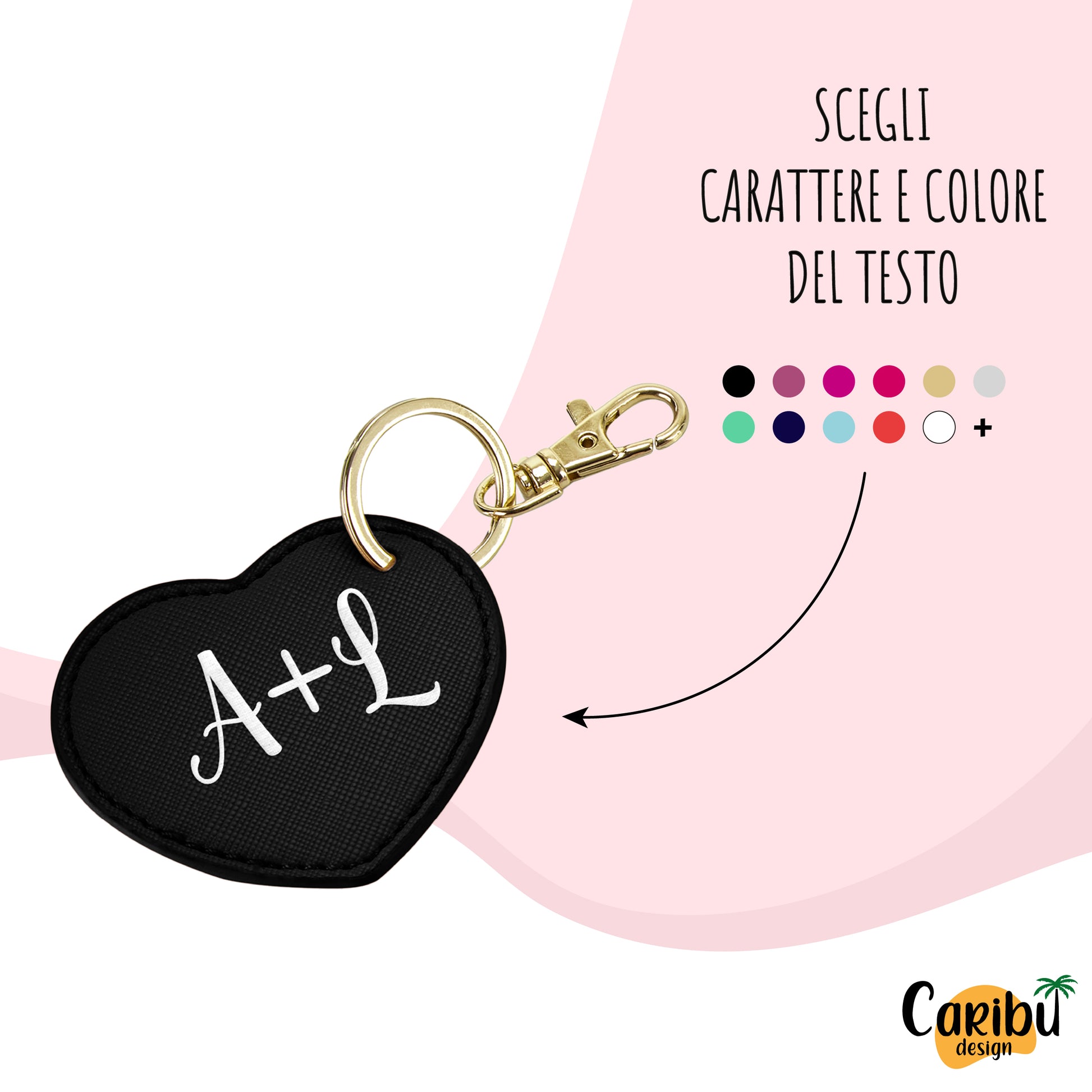 • COLORI: il portachiavi a forma di cuore è disponibile in diversi colori: Nero, Corallo e Rosa. L'anello è di metallo color oro. Clicca su "personalizza ora" e abbina il tuo portachiavi con il colore del testo che preferisci.