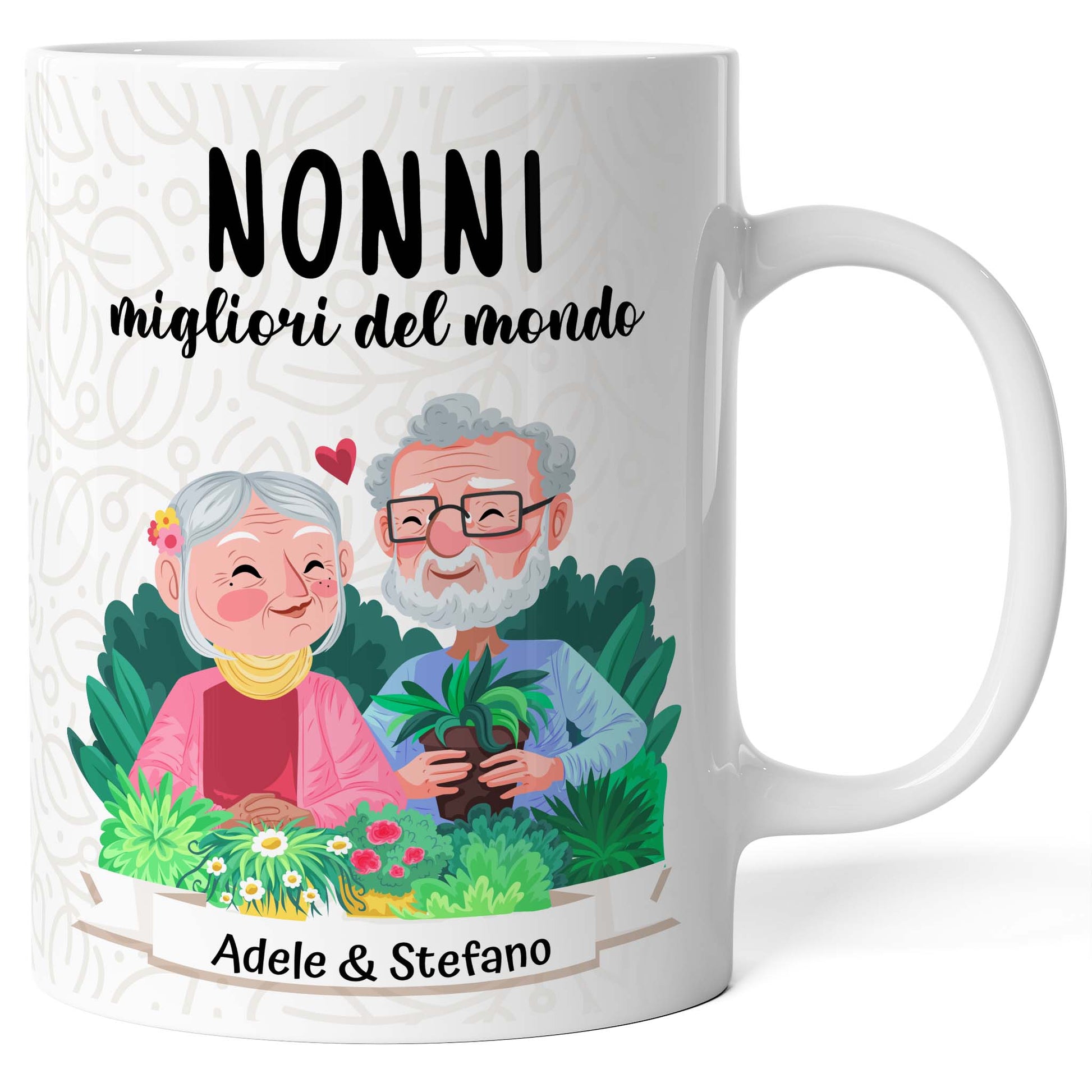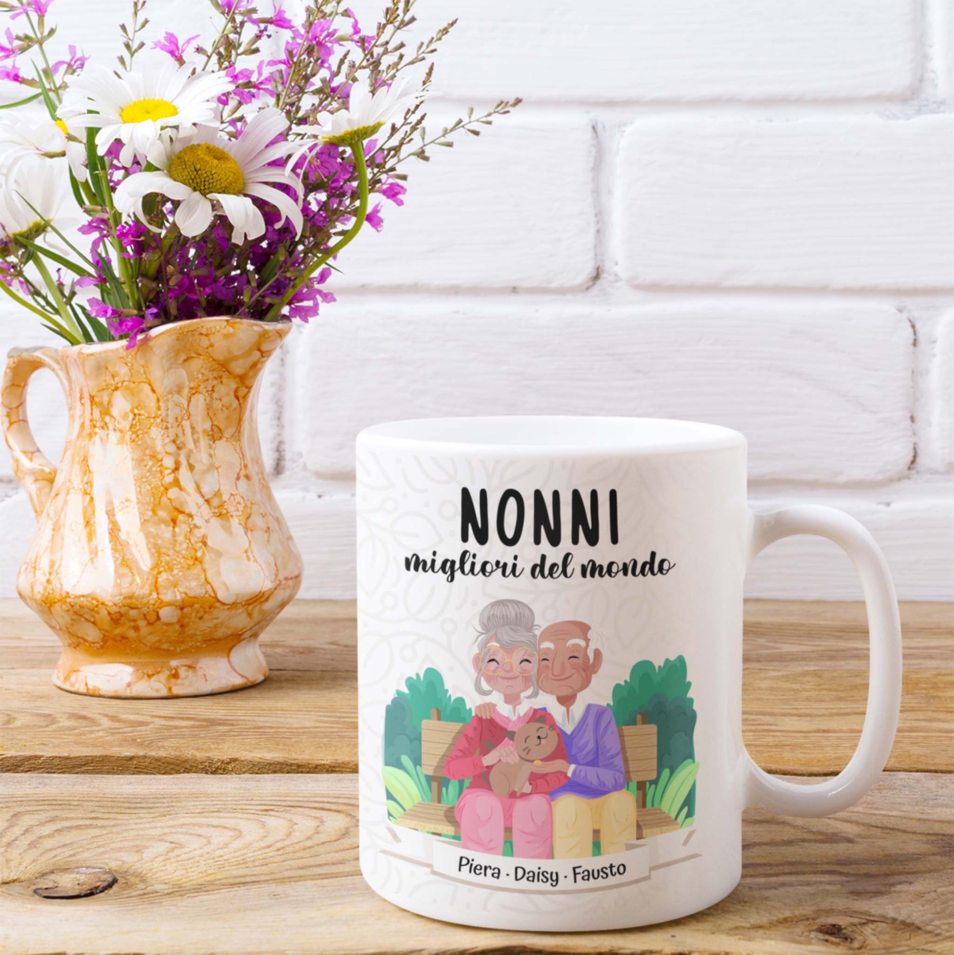 - TAZZA PERSONALIZZATA: Questa tazza è personalizzabile con il nome del nonno e della nonna (oltre a quello dei nipoti e degli animali domestici in alcune versioni) , ed è un regalo perfetto sia per la Festa del Nonno o della Nonna, che per tutte le occasioni speciali. Fare colazione con questa tazza, li farà svegliare con il buon umore, ricordandogli quanto siano importanti per te e la tua famiglia.